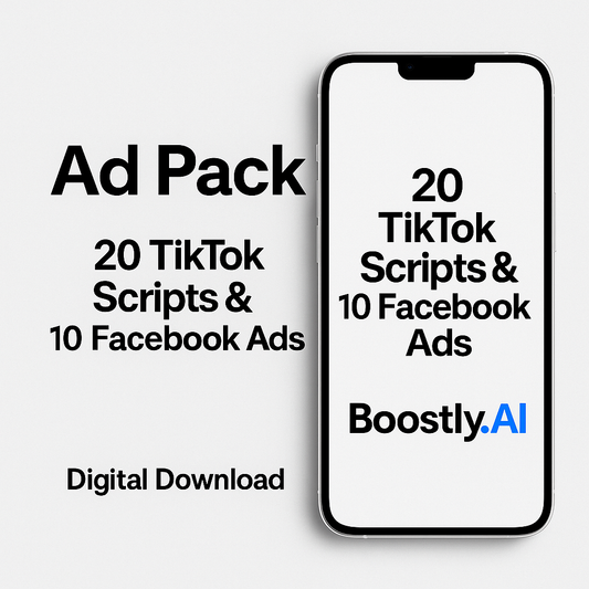 Boostly.ai™ - Ad Pack (20 TikTok Scripts + 10 Facebook Ads)